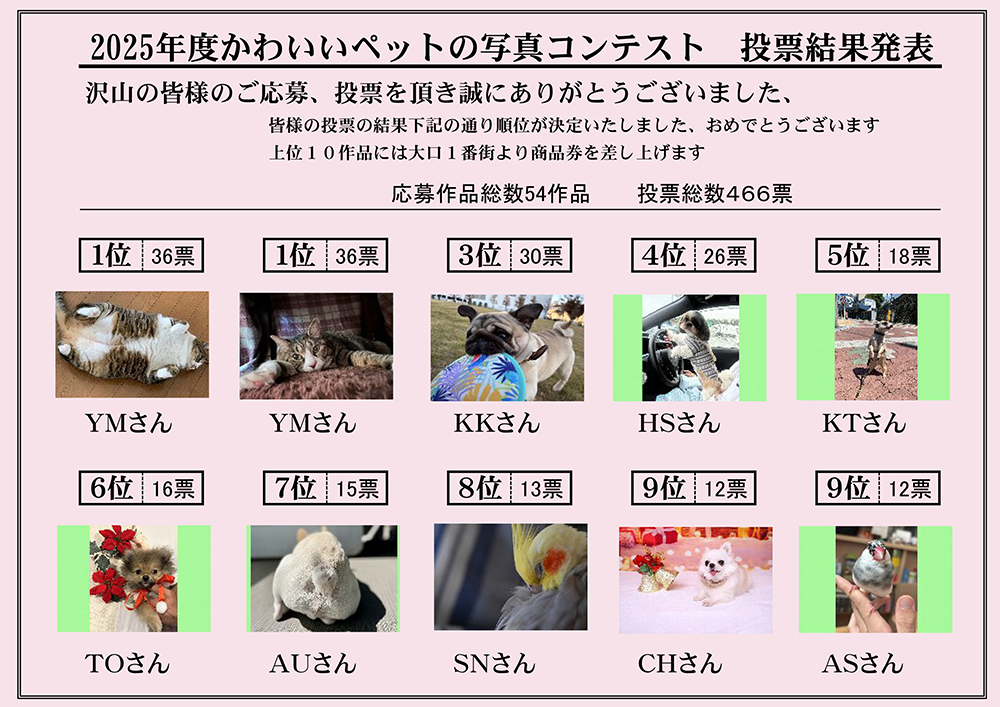 かわいいペットの写真コンテスト(結果発表)